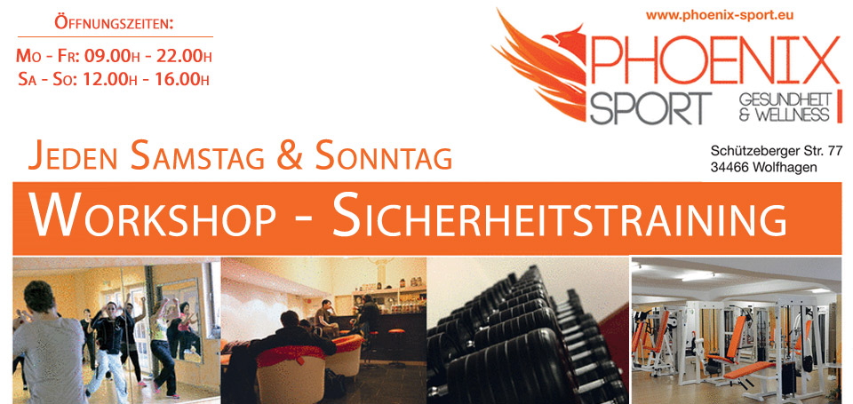 Wir bieten ab September 2016 in Kooperation mit dem Phönix Fitnessstudio jeden Samstag und Sonntag als festen Veranstaltungsort an. Je nach Ihrem Wunsch wären auch an diesen Tagen nachmittags und abends Kurse möglich.